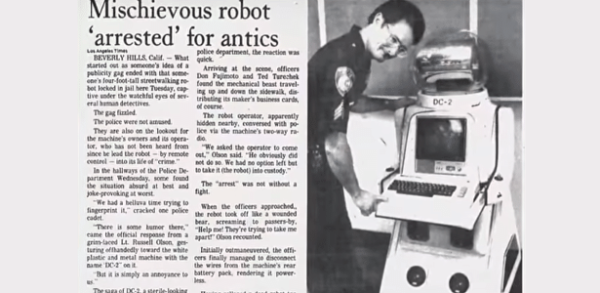 Byadmindezembro 3, 2024O DC-2, então, foi desativado e levado ao distrito policial. ”Ajudem-me! Estão tentando me desmontar”, gritava o robô enquanto sua fonte de energia...