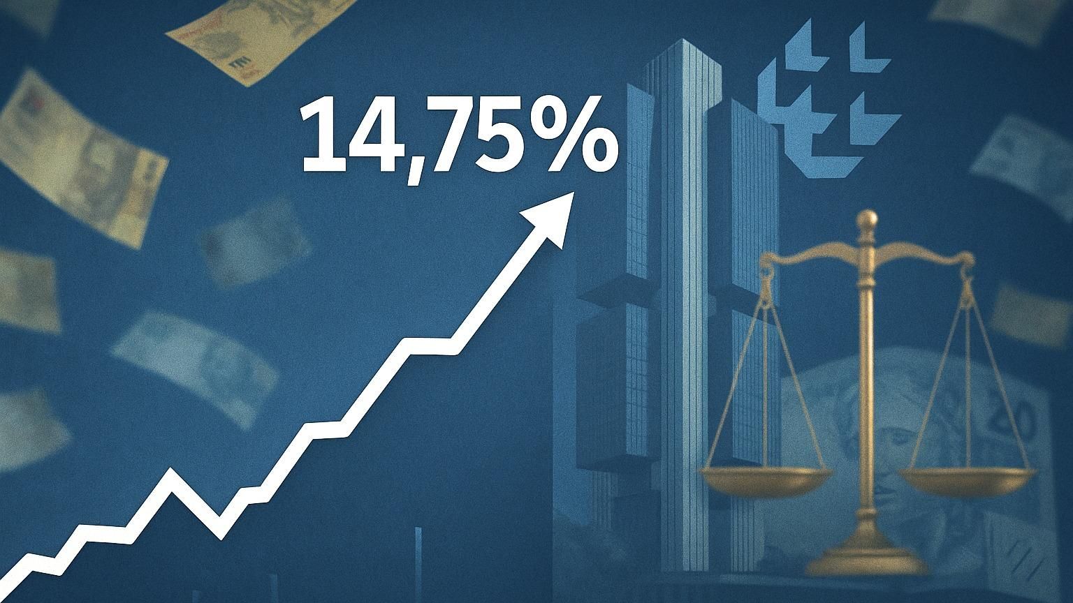 Copom definiu a taxa básica de juros da economia, a Selic, em 14,75% ao ano. (Foto: Ilustração: Vandré Kramer/Gazeta do Povo com DALL-E )