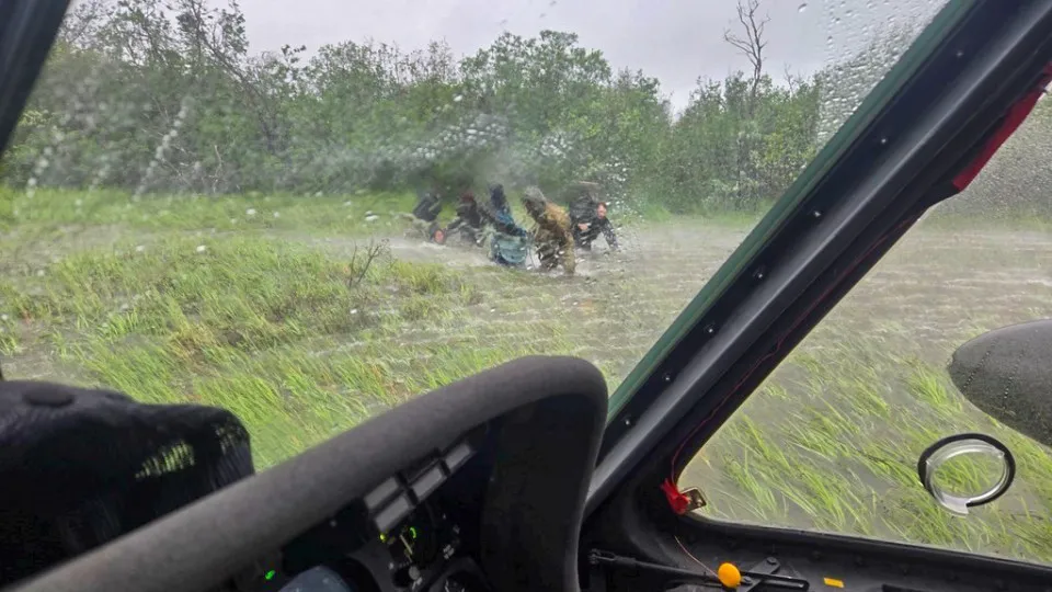 Uma família de seis pessoas, incluindo uma idosa e uma criança, foi resgatada de um rio no Alasca após passar um dia enfrentando condições climáticas extremas.