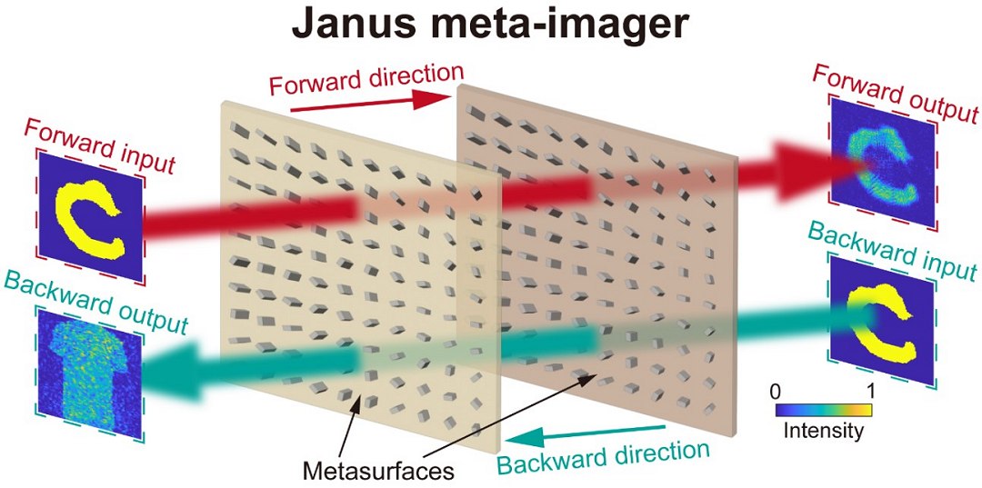 É um inédito imageador assimétrico, que permite a transmissão e a transformação de imagens em direções opostas.