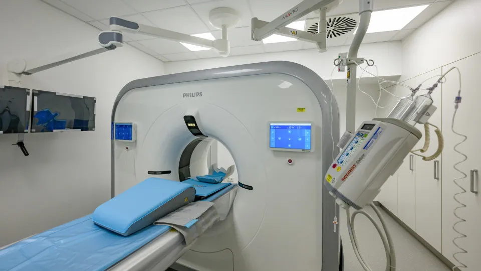 Uma máquina de ressonância magnética é um dispositivo de imagem médica que utiliza fortes campos magnéticos e ondas de rádio para criar imagens detalhadas do interior do corpo do paciente. Essas imagens ajudam os médicos a diagnosticar e monitorar diversas condições médicas.