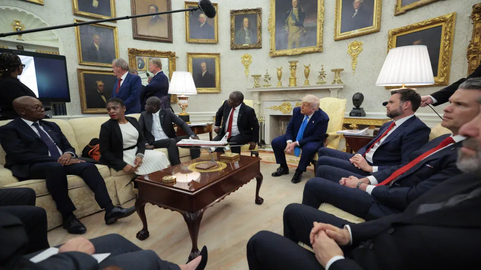 O episódio ocorreu durante a visita do presidente da África do Sul, Cyril Ramaphosa, a Washington. Em um momento anterior da reunião, Trump já havia causado constrangimento ao exibir vídeos não verificados que supostamente mostrariam ataques a fazendeiros brancos sul-africanos, reiterando sua tese de “genocídio branco” no país africano — uma narrativa amplamente contestada por Ramaphosa e por autoridades sul-africanas.